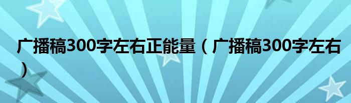 大家好,我是小科,我来为大家解答以上问题。广播稿300字左右正能量,广播稿300字左右很多人还不知道,现在让我们一起来看看吧!