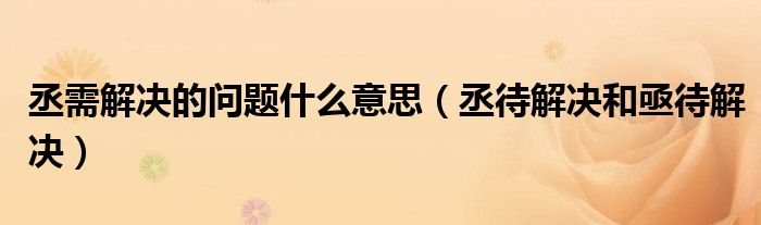 大家好,小联来为大家解答以上的问题。丞需解决的问题什么意思,丞待解决和亟待解决这个很多人还不知道,现在让我们一起来看看吧!
