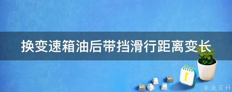 换变速箱油后带挡滑行距离变长可能是油液粘度不同、油液质量不佳、没有正确调整油液的量。建议检查油液量、检查油液质量。如果问题持续存在或变得更严重,建议咨询专业的汽车维修技师,以获取准确的诊断和解决方案。