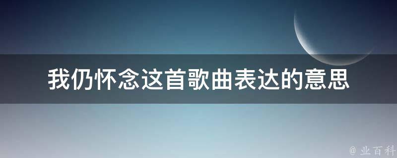 我仍怀念这首歌曲达了一个人对曾经听过的特定歌曲的情感思念。这首歌可能代表着一些特殊的时刻、人或感情。某些歌曲可能会让人联想到过去,使人回忆起美好的时光,或者是回想起某些遗憾和失落的经历。无论怀念的原因是什么,这首歌对个人来说至关重要,因为它和特定的回忆联系在一起,具有独特的情感价值。