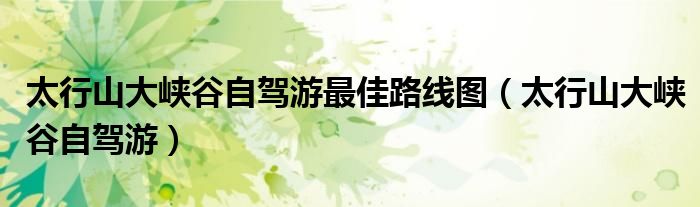 大家好,小华来为大家解答以上的问题。太行山大峡谷自驾游最佳路线图,太行山大峡谷自驾游这个很多人还不知道,现在让我们一起来看看吧!