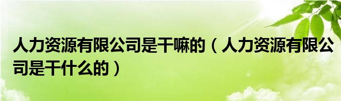 大家好,小联来为大家解答以上的问题。人力资源有限公司是干嘛的,人力资源有限公司是干什么的这个很多人还不知道,现在让我们一起来看看吧!