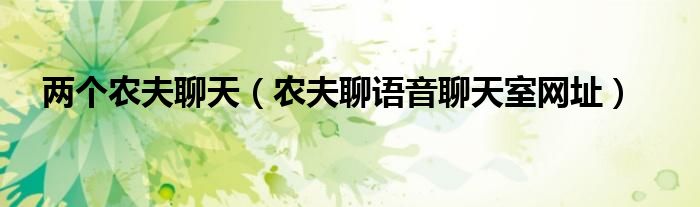 大家好,小联来为大家解答以上的问题。两个农夫聊天,农夫聊语音聊天室网址这个很多人还不知道,现在让我们一起来看看吧!