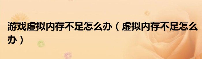 今天小饼为大家解答以下问题,关于游戏虚拟内存不足怎么办,虚拟内存不足怎么办很多人还不知道,现在让我们一起来看看吧!