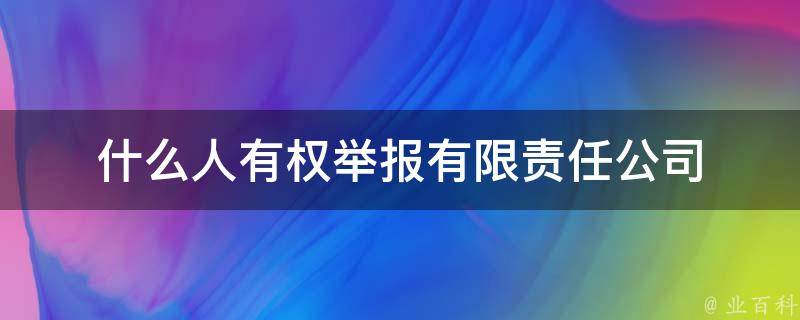 任何人都拥有举报有限责任公司的权利。举报是一种公民权利,是指公民对国家机关、企事业单位和社会团体及其工作人员违反法律、法规和政策的行为,向有关国家机关和组织进行检举、控告的行为。举报人可以向有关部门举报,也可以向媒体披露相关信息,以引起公众的关注和重视。需要注意的是,举报人应该提供真实、准确的信息和证据,不得捏造、歪曲事实,不得诬告陷害他人。