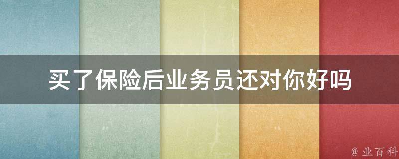 视情况而定。购买保险后,业务员的态度可能会有所不同。有些业务员会继续对客户友好和关心,而有些业务员可能会因为客户已经购买了保险而不再那么热情。然而,这并不代表所有业务员都会这样。许多业务员会继续为客户提供良好的服务和支持,以帮助客户充分利用保险并解决任何问题。此外,一些业务员可能会将更多的精力放在开发新的业务上,以增加他们的销售业绩。
