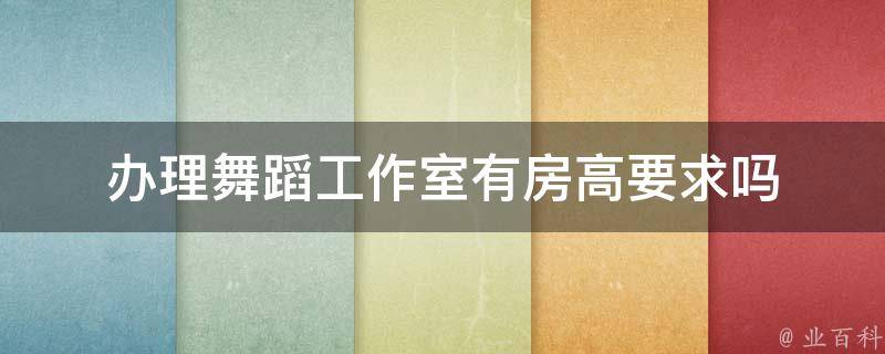 办理舞蹈工作室有房高要求。舞蹈类教室净高要达到4.5米。周边门面、办公楼一般净高都是在3米左右。此外,办理舞蹈工作室还需要满足以下条件:场地面积不得小于200平米;消防设施齐全;空调设备齐全;必须有独立的出入口;采光良好。
