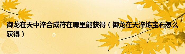 大家好,我是小科,我来为大家解答以上问题。御龙在天中淬合成符在哪里能获得,御龙在天淬炼宝石怎么获得很多人还不知道,现在让我们一起来看看吧!