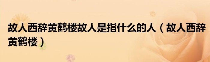 大家好,小联来为大家解答以上的问题。故人西辞黄鹤楼故人是指什么的人,故人西辞黄鹤楼这个很多人还不知道,现在让我们一起来看看吧!