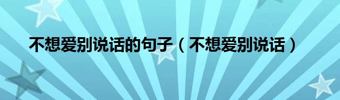 大家好,我是小科,我来为大家解答以上问题。不想爱别说话的句子,不想爱别说话很多人还不知道,现在让我们一起来看看吧!
