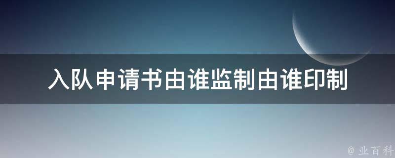 入队申请书由谁监制由市级少工委监制、学校少工委印制。新队员和新聘任的少先队辅导员,首次佩戴的红领巾、队徽、队委队长标志等由学校统一采购配发,所需经费从学校公用经费中支出。新中队辅导员上岗前须经学校党组织考察,由学校少工委聘任。