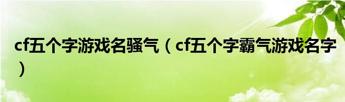 大家好,我是小科,我来为大家解答以上问题。cf五个字游戏名骚气,cf五个字霸气游戏名字很多人还不知道,现在让我们一起来看看吧!
