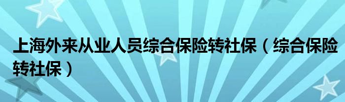 大家好,我是小科,我来为大家解答以上问题。上海外来从业人员综合保险转社保,综合保险转社保很多人还不知道,现在让我们一起来看看吧!