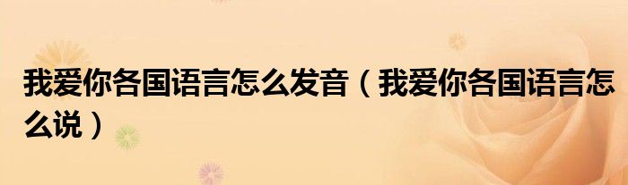 大家好,我是小科,我来为大家解答以上问题。我爱你各国语言怎么发音,我爱你各国语言怎么说很多人还不知道,现在让我们一起来看看吧!
