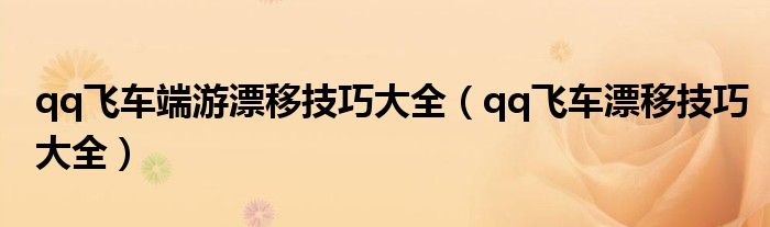 qq飞车端游漂移技巧大全(qq飞车漂移技巧大全)