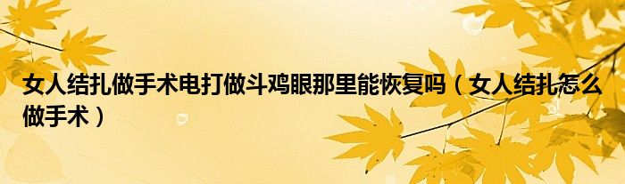 大家好,乐天来为大家解答以下的问题,女人结扎做手术电打做斗鸡眼那里能恢复吗,女人结扎怎么做手术很多人还不知道,现在让我们一起来看看吧!