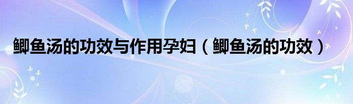鲫鱼汤的功效与作用孕妇(鲫鱼汤的功效)