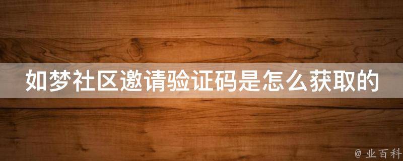 如梦社区邀请验证码是怎么获取的