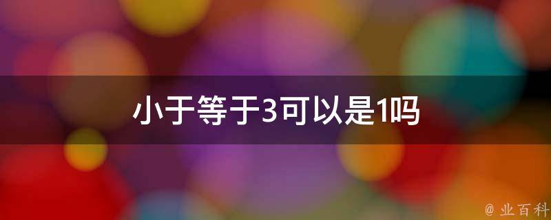 小于等于3可以是1。小于等于3的数字有无数个,其中就包括1。小于等于是一种数学符号,用来表示不等式左侧的值小于等于不等式右侧的值,在各种数学,或编程中会出现。命题中,小于等于是小于或者等于,只要满足一个条件即可成立。