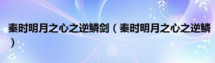 大家好,小华来为大家解答以上的问题。秦时明月之心之逆鳞剑,秦时明月之心之逆鳞这个很多人还不知道,现在让我们一起来看看吧!