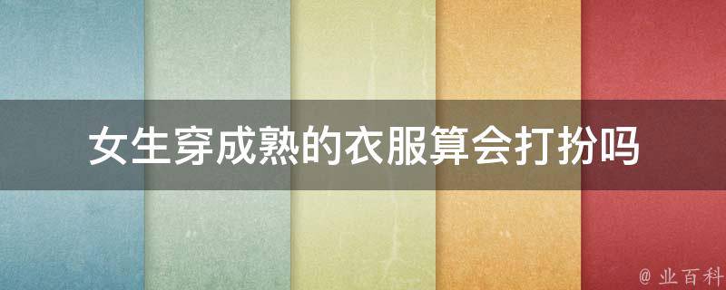 女生穿成熟的衣服算会打扮,成熟的打扮可以凸显人的稳重和成熟的形象。随着年龄的增长,一些时尚流行的衣服或者发型并不适合穿在自己身上,会显得很幼稚或者很俗气。穿着得体,举止从容,会给人一种知性大气、不张扬但有内涵的感觉,进而促进个人自信心的提升,更加能在人际交往中表现出自己的特点。