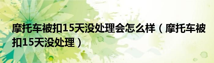 大家好,我是小科,我来为大家解答以上问题。摩托车被扣15天没处理会怎么样,摩托车被扣15天没处理很多人还不知道,现在让我们一起来看看吧!
