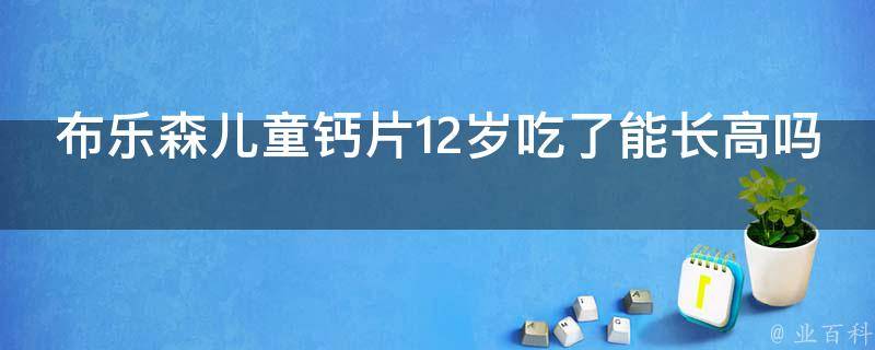 布乐森儿童钙片12岁吃了能长高。骨骼在生长的过程当中,需要的钙量元素特别多,在平时生活中适当的吃一些钙片,能够满足骨骼生长发育所需要的一些钙物质,促进肌肉和骨骼快速的生长和发育,同时也会使孩子快速长高。服用钙片的过程当中,也应该配合运动,避免生长发育迟缓。