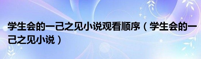大家好,我是小科,我来为大家解答以上问题。学生会的一己之见小说观看顺序,学生会的一己之见小说很多人还不知道,现在让我们一起来看看吧!