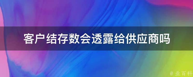 客户结存数不会透露给供应商。客户结存数是企业或个人在特定时间点上的资产余额,属于客户的隐私信息。在商业活动中,客户结存数通常需要保密,以保护客户的商业利益和财务状况。