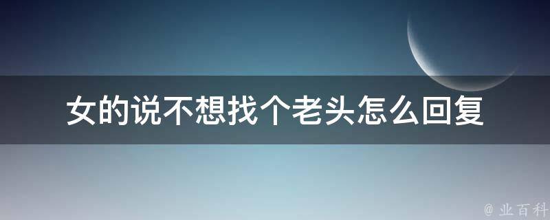 女的说不想找个老头,可以回复:那你找个年轻的吧,按照自己的喜好来。择偶除了看外貌,还要了解对方的性格,侧面了解一下父母的为人,俗话说父母是孩子最好的老师,父母的人品在很大程度上会影响子女的人品。还要看对方是否注意个人卫生。