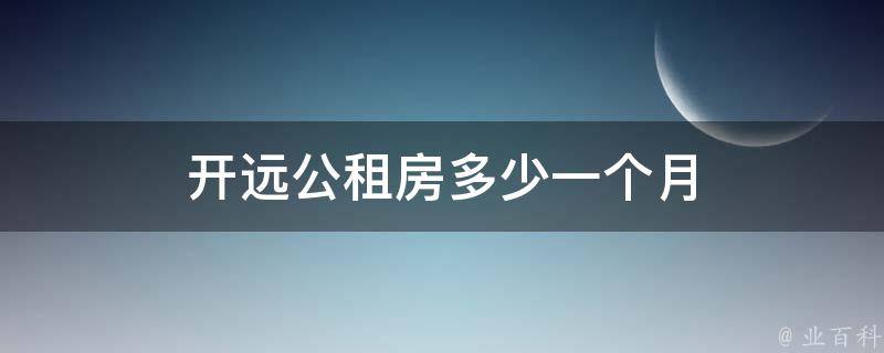 开远公租房多少一个月