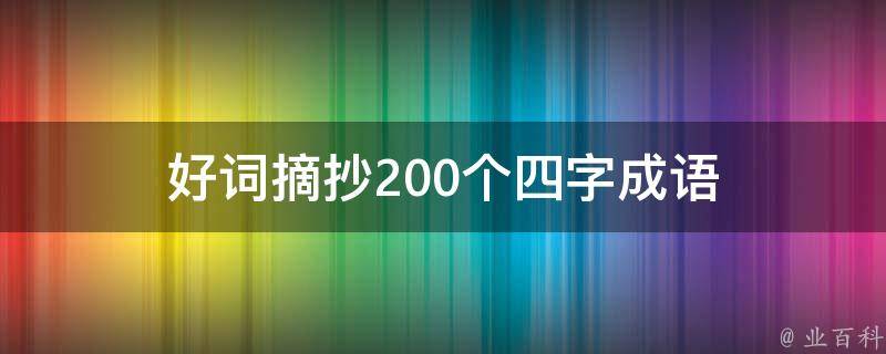 好词摘抄四字成语有多谋善断、从容不迫、方寸不乱、金风送爽、雁过留声、秋色宜人、天朗气清、日月如梭、光阴似箭、寒来暑往、星移物换、风吹草动、雨过天晴、瓜熟蒂落、水到渠成、人外有人、天外有天、学无止境、一往无前、滴水成冰、地冻天寒、鹅毛大雪、雪兆丰年、勤能补拙、笨鸟先飞、奋起直追、宁折不弯、义正辞严、威武不屈、大义凛然、火树银花、数不胜数、灯火通明、观者如堵、一望无边、不知不觉、雪窖冰天、勤学苦练、无家可归、千山万水、千辛万苦、三五成群、无忧无虑、跋山涉水、餐风饮露、水送山迎、赏心悦目、生机勃勃、心狠手辣、起早贪黑、神通广大、高耸入云等。