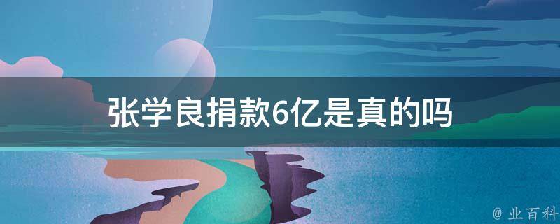 张学良捐款6亿是真的。他将自己高达6亿美元的遗产全部捐赠给了美国哥伦比亚大学,没有留给自己的子女,也没有捐给祖国。这一选择让许多人难以置信,但张学良的决定已经岿然不动。张学良的一生经历充满了曲折和挫折,但他依然是一位伟大的人物。
