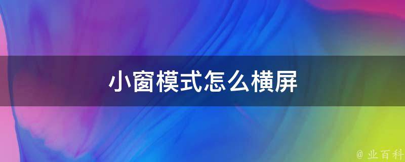 小窗模式怎么横屏