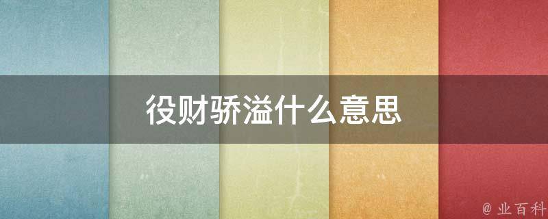 役财骄溢的意思是依仗自己拥有的财富,骄横过分。役有役使、使用的意思,在役财骄溢一词中,是依仗的意思。溢的本义是水满后涨出,在该词中是过分的意思。宋朝司马光《训俭示康》记载:骄溢倾家。在古代,役财骄溢表明政府让百姓承担的赋役过于繁重。