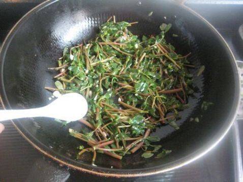 食材准备:马齿笕200克、蒜末、盐、鸡精各适量。