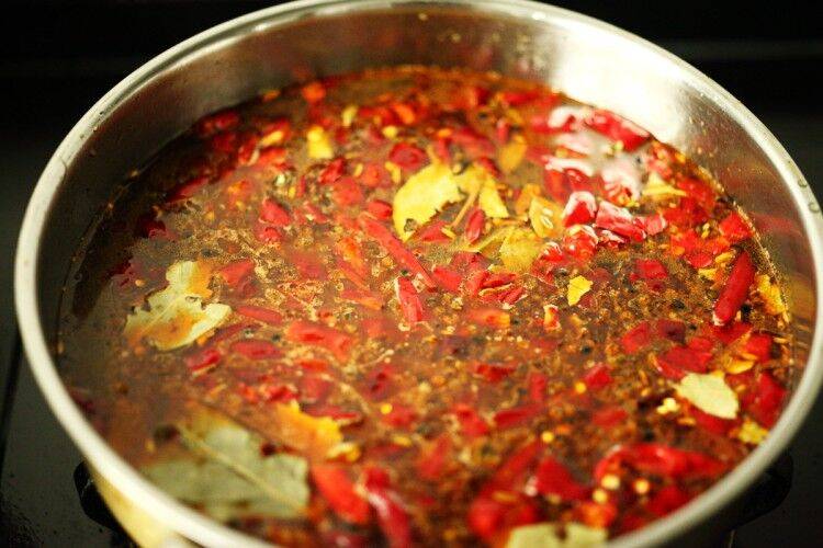 食材准备:辣椒100克、花椒100克、油、盐、香料、大蒜、生姜、辣椒酱、大骨汤、料酒、生抽、鸡精各适量。