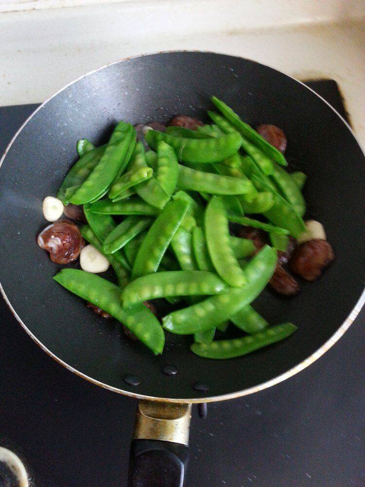 5、放荷兰豆继续翻炒。