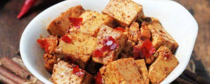 9、倒入豆腐,调入酱油、糖烧3分钟。