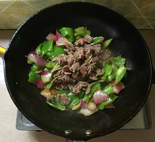 用料:牛里脊肉220克、绿辣椒200克、洋葱60克、生抽酱油10毫升、蒸鱼豉油10毫升、料酒10毫升、生粉2克、生姜5克、精盐3克、原味鲜1克、食用油30毫升。