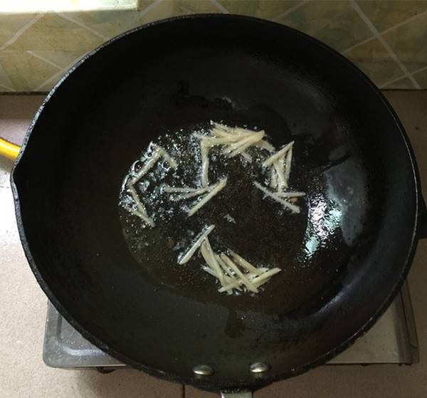5、热锅凉油,下姜丝炝锅。
