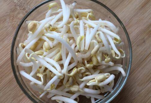 用料:绿豆芽200克、油适量、盐1克、红椒1个、香葱3根、姜丝3克、干花椒。