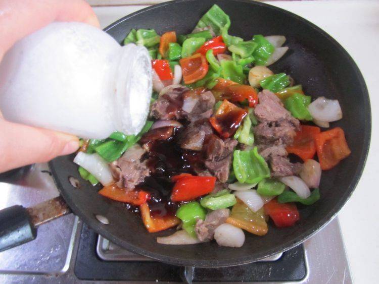 6、再加入适量的盐和胡椒粉等调味料翻炒。