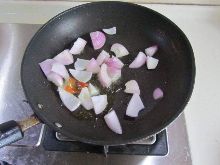 2、烧热锅,放少许油,下入洋葱翻炒。