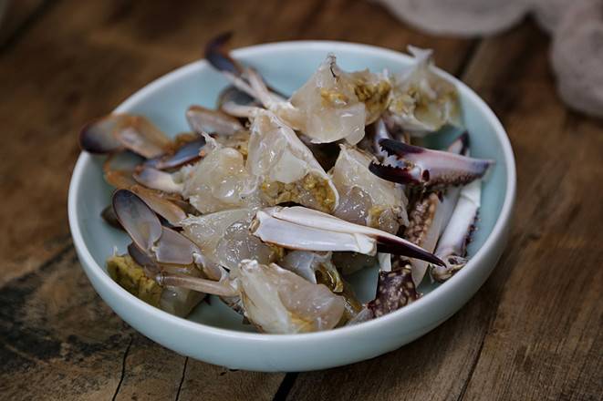 1、准备材料:梭子蟹2只、小米辣7个、生姜4克、韭黄适量、大蒜4克、生抽一勺、料酒一勺、水淀粉适量。