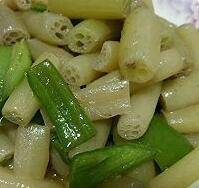加入莲藕梗大火翻炒,出锅前洒盐。