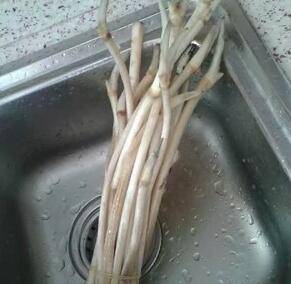 用料:藕杆300克、生抽10克、蒜2瓣鸡精。