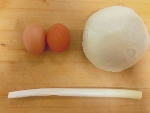 用料:鸡蛋2个、馍馍1个、葱1根、盐小半勺。