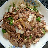 6、待六成熟时,放入炒过的牛肉,炒入味出锅即可。