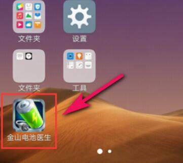 3、安装好以后,回到桌面,找到金山电池医生图标,点击打开。
